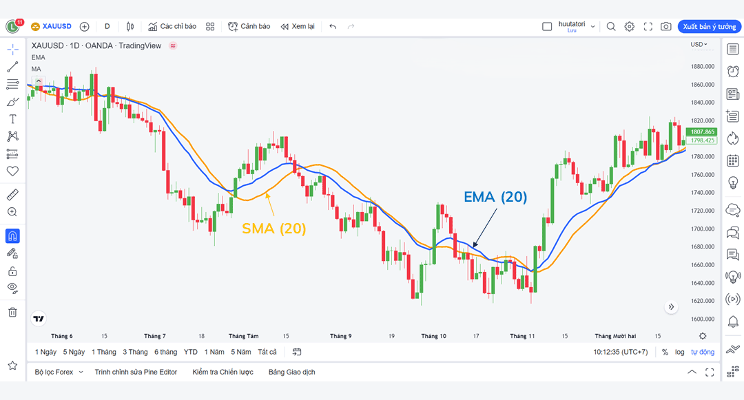 3. Phân biệt đường trung bình SMA và EMA trong giao dịch