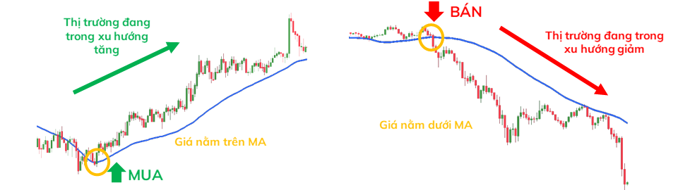 • Giá ở dưới MA → ưu thế thuộc về xu hướng giảm.